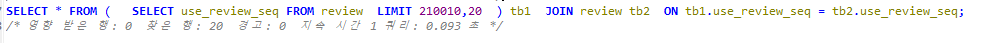 JOIN을 이용한 예시(use_review_seq는 primary key입니다)