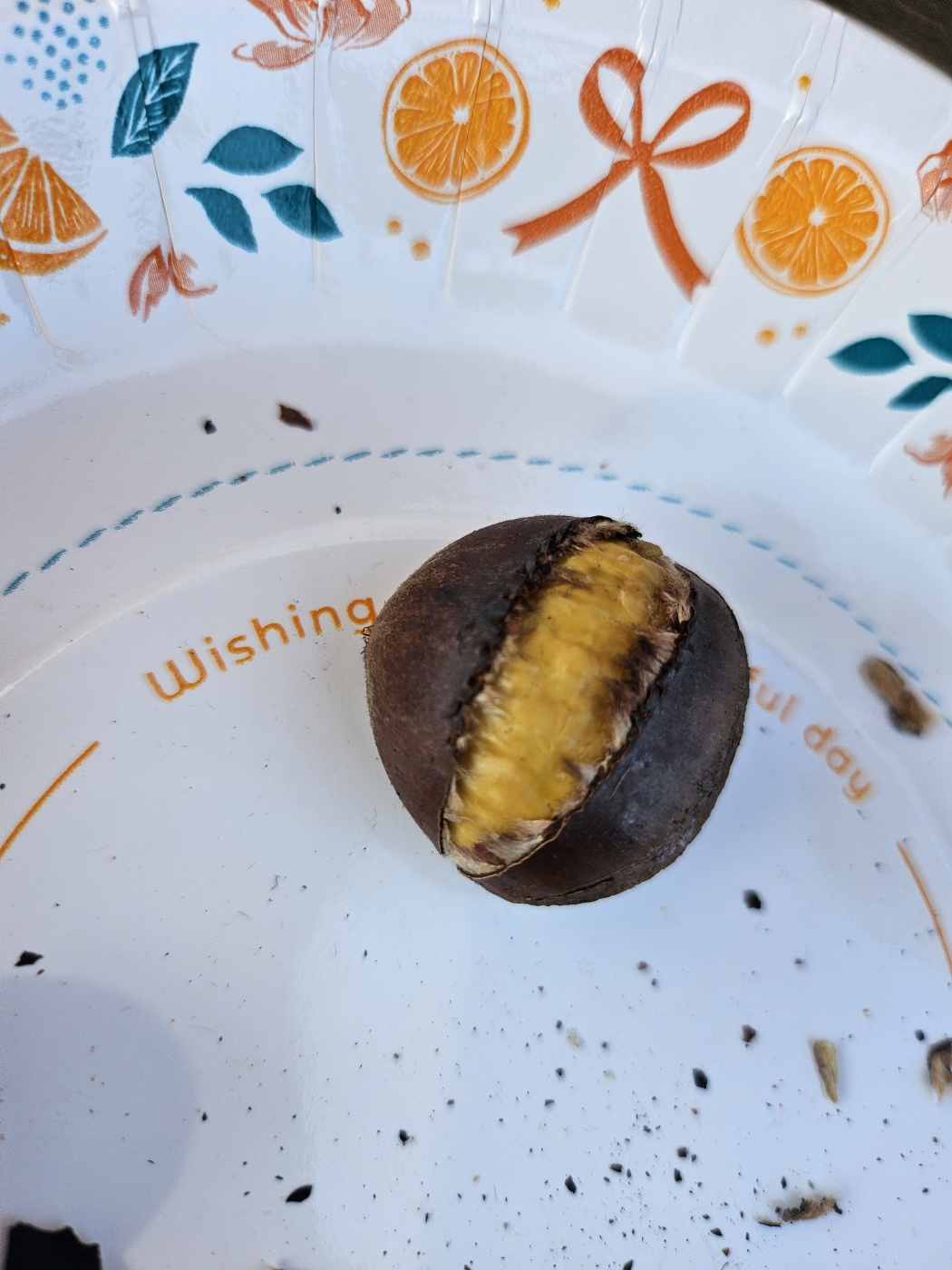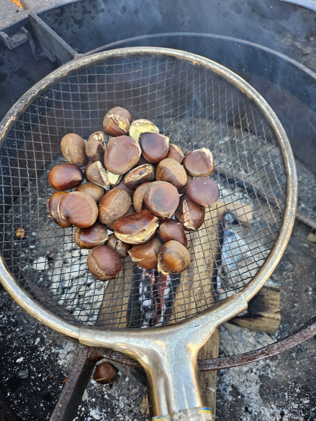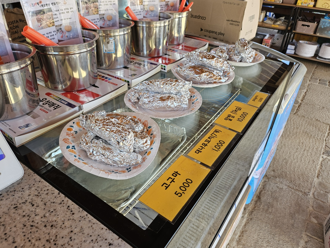 매점에는 고구마와 알밤을 따로 팔아서 알밤을 구매하면 칼집을 낼 수 있는 집게와 밤을 구울 수 있는 도구들이 기본으로 나오는 것 같았습니다. 그러나 저희는 도구를 따로 요청하니 흔쾌히 내어주셔서 잘 구워먹었습니다.