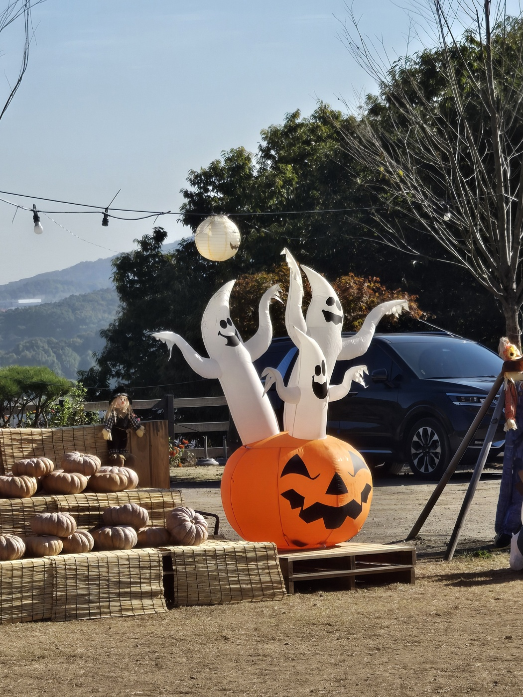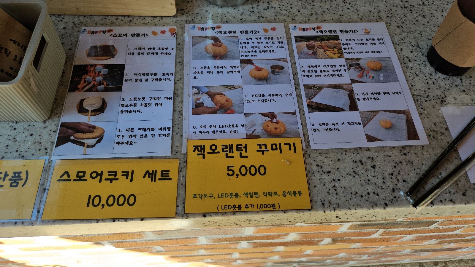 할로윈 시즌이라 분장해서 오시는 가족분들도 많이 오셨고, 잭오랜턴을 만들 수 있도록 호박이 진열되어 있었습니다. 호박은 크기별로 하단에 가격이 적혀있었습니다. 그리고 사장님께서 배 따기 시즌이 1주일 연장되서 할 수도 있었고, 밤나무가 있는 산에 구경차원에서 가도 된다고 하셨습니다. 밤 줍는것은 기대를 하지말라셨지만.....