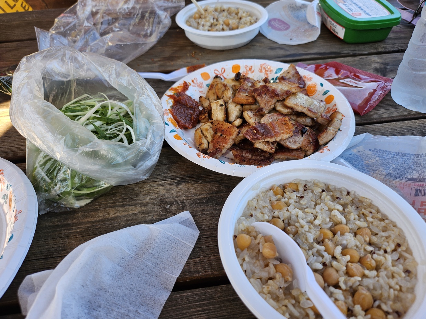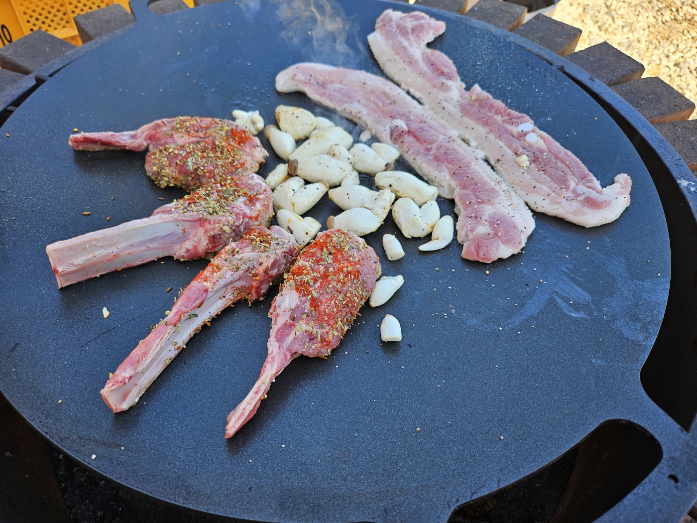 많은 활동과 점심시간 이르게 되자 배가 고파서 집에서 가져온 양고기와 삼겹살을 구워 먹었습니다.