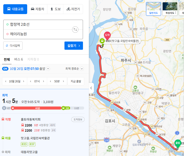 헤이리농원은 네이버를 통해 10시 타임으로 예약하였고, 가는 길이 교통적으로 험난하지 않을 것 같단 생각에 도전해봤습니다.