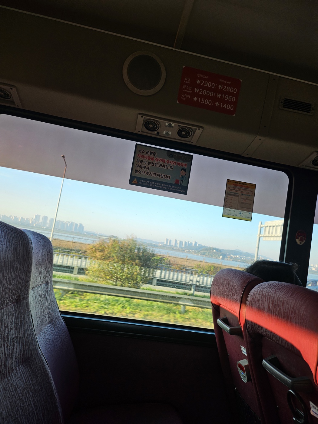 홀트아동복지회에서 2200번 광역버스를 타고, 국립민속박물관역으로 향합니다. 아침에는 차가 많지 않아 막히지 않고 빠르게 갔었습니다. 가는 길에 한강도 구경하고 좋았어요. 가는 길은 40분정도 소모되었지만, 오는길은 차가 막혀서 1시간정도 걸렸던 것 같습니다.