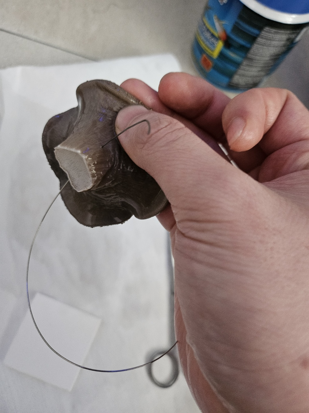 빠르게 철사를 레더에 뚫고 아서 프랙베이스에 본드를 이용해서 철사를 고정해놓았습니다.