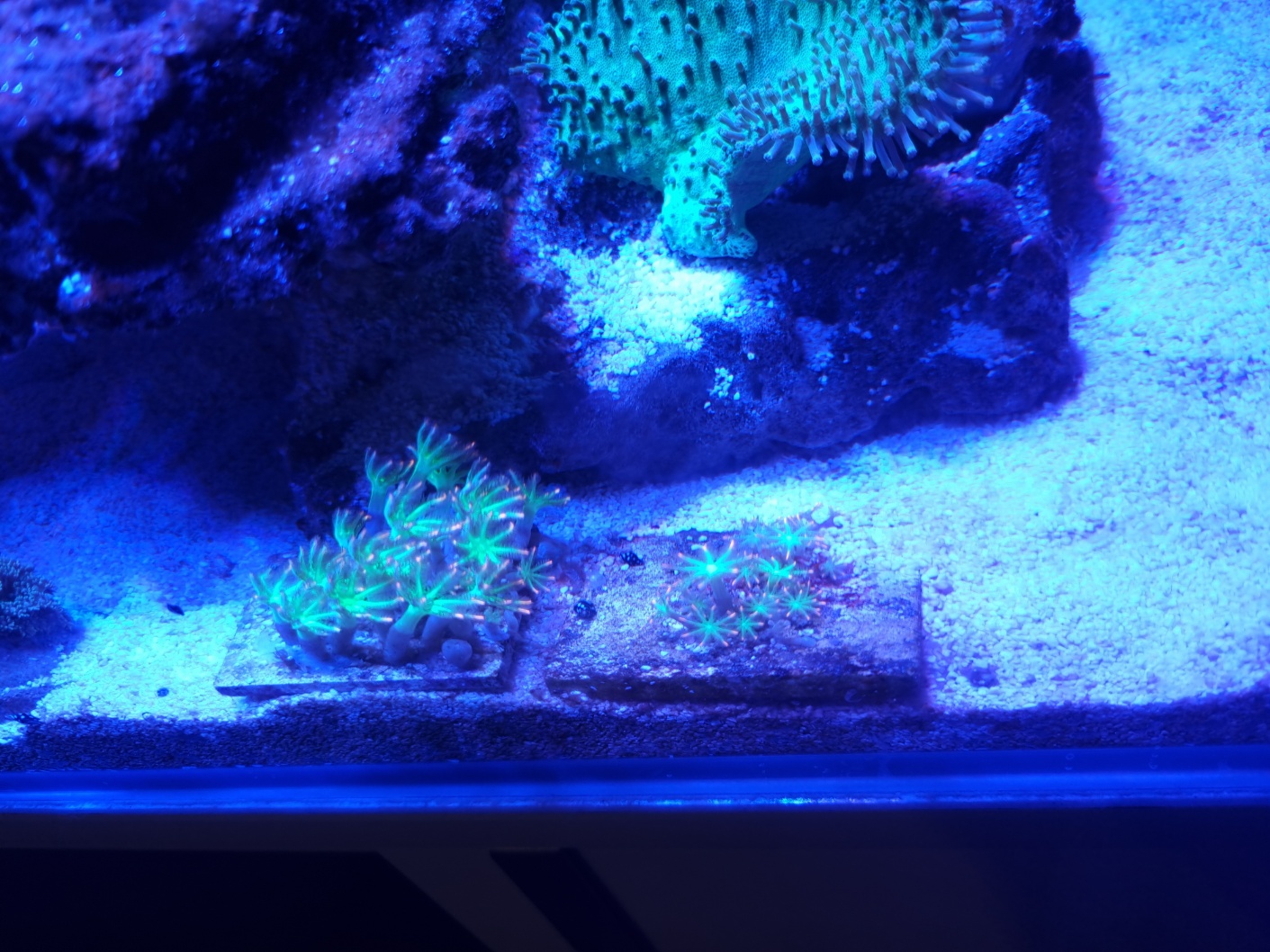 개인적으로 물멍할때 니모들 다음으로 좋아하는 메탈릭 스타폴립. 생긴거는 잔디 풀때기처럼 생겼지만 나름 동물로 불리는 산호다. 실제로 수류가 날리면 잔디가 흩날리는 것처럼 장관을 보여주는 모습이 예술이다 .이 친구들도 처음에는 하나밖에 없었는데 프랙을 치고 계속 키우다보니 잘 자라주고 있다. 나중에는 넓은 들판의 모습을 보여주는 것 목표로 후에 다시 프랙을 칠 예정이다.